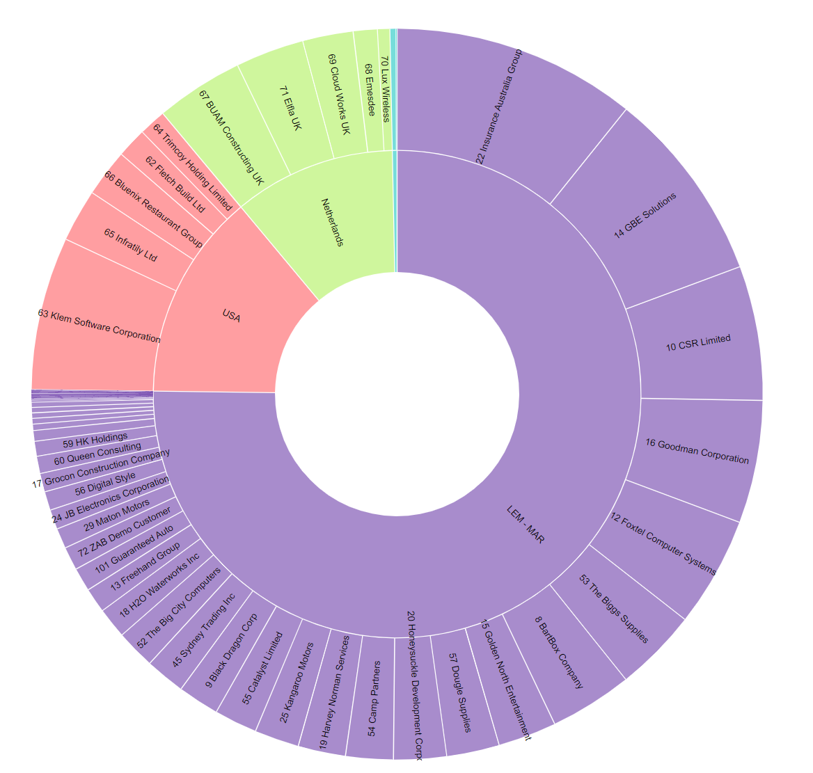4 mouse clicks is all it takes. Quickly see your receivables displayed by Region, Company, and Invoice. In seconds you can identify the invoices that have the customers and overdue invoices with the most impact on the business.