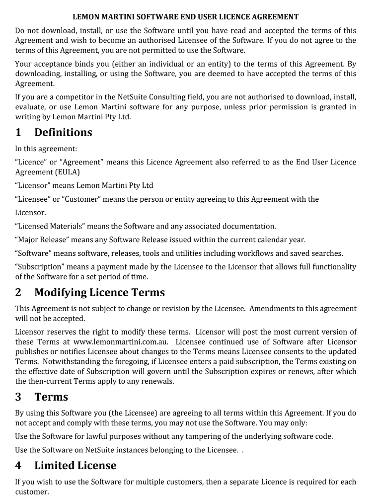Lemon Martini End User License Agreement & Refund Policy