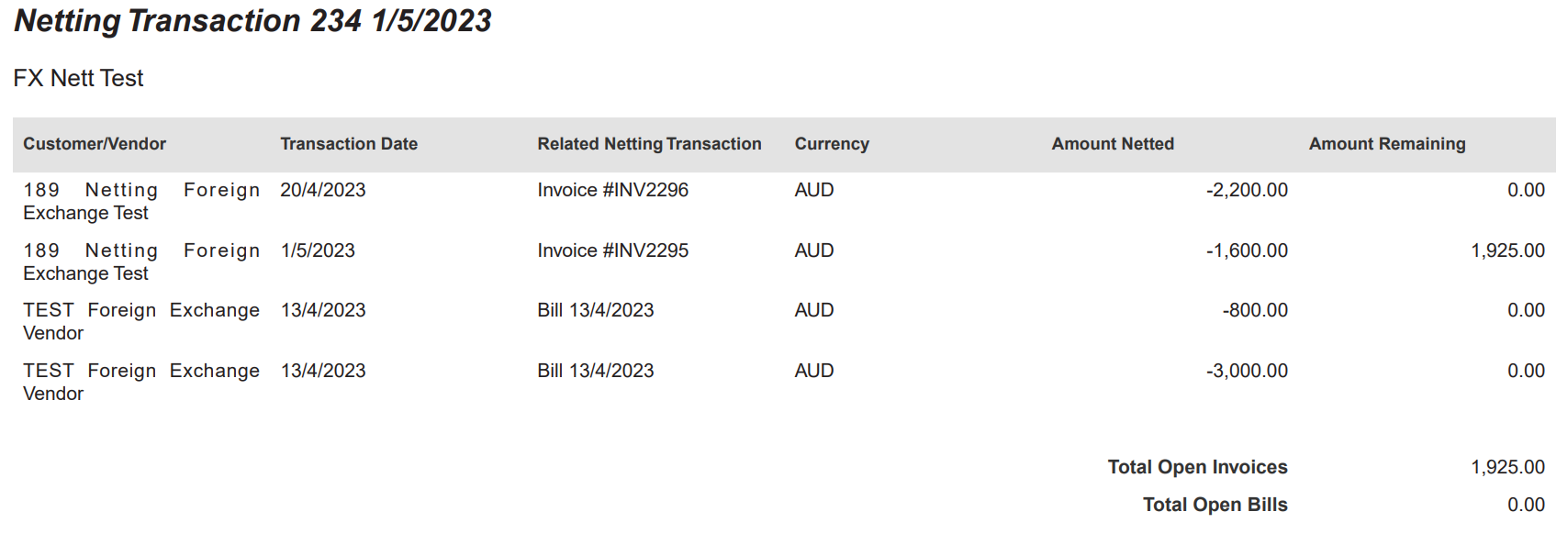 Our innovative solution not only simplifies the netting process, but it also provides a comprehensive breakdown of the vendor bills and customer invoices that make up the netted amount. This is summarised in a PDF for easy communication with your Customer/Vendor.