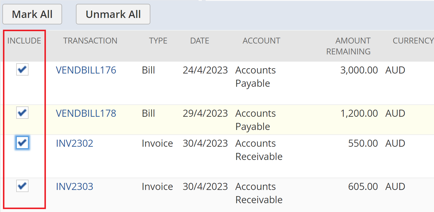 Our solution allows you to easily select and filter invoices and bills to ensure that only the most relevant transactions are included in the netting process. This level of control not only streamlines the process but also ensures that your financial data is accurate and up-to-date.